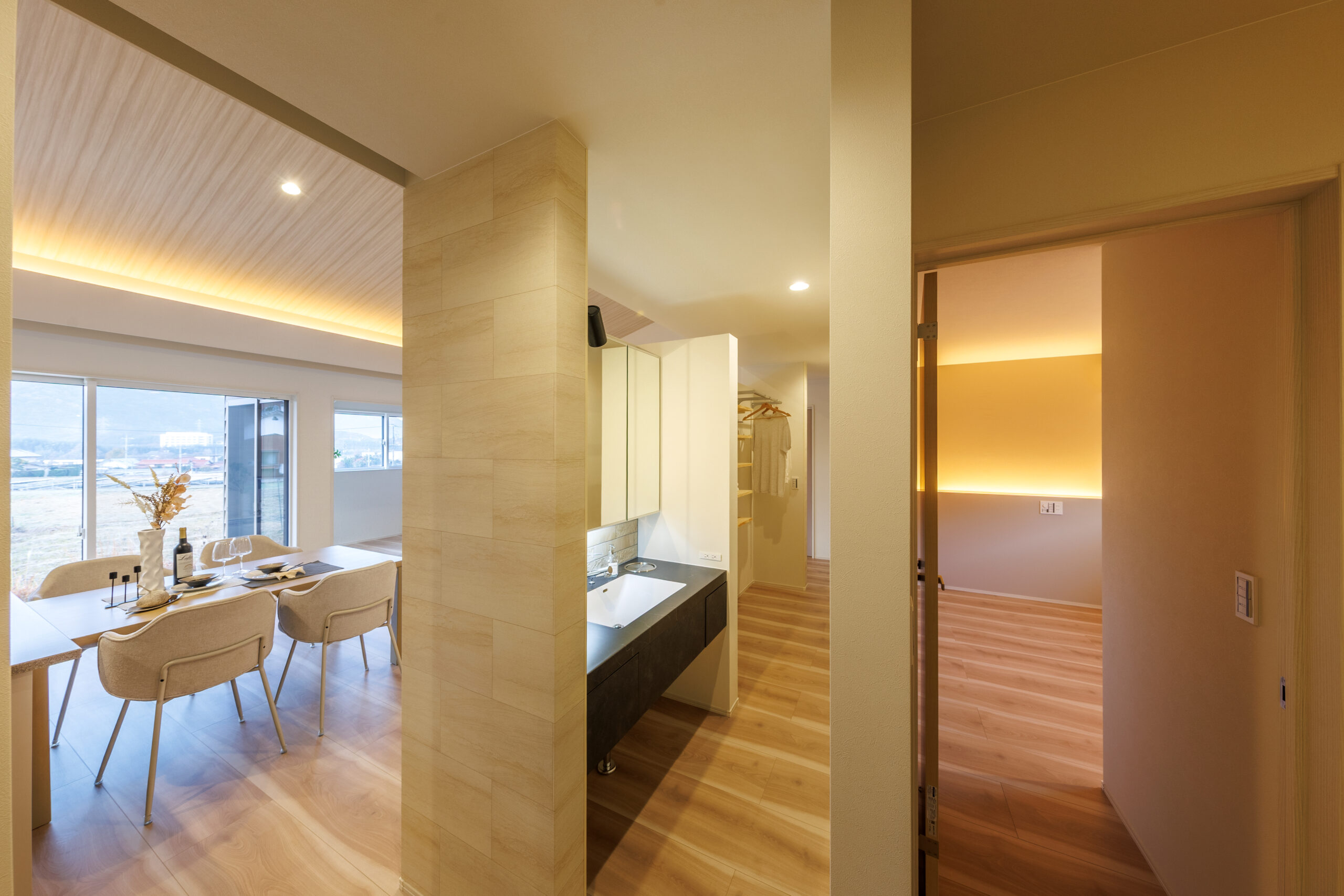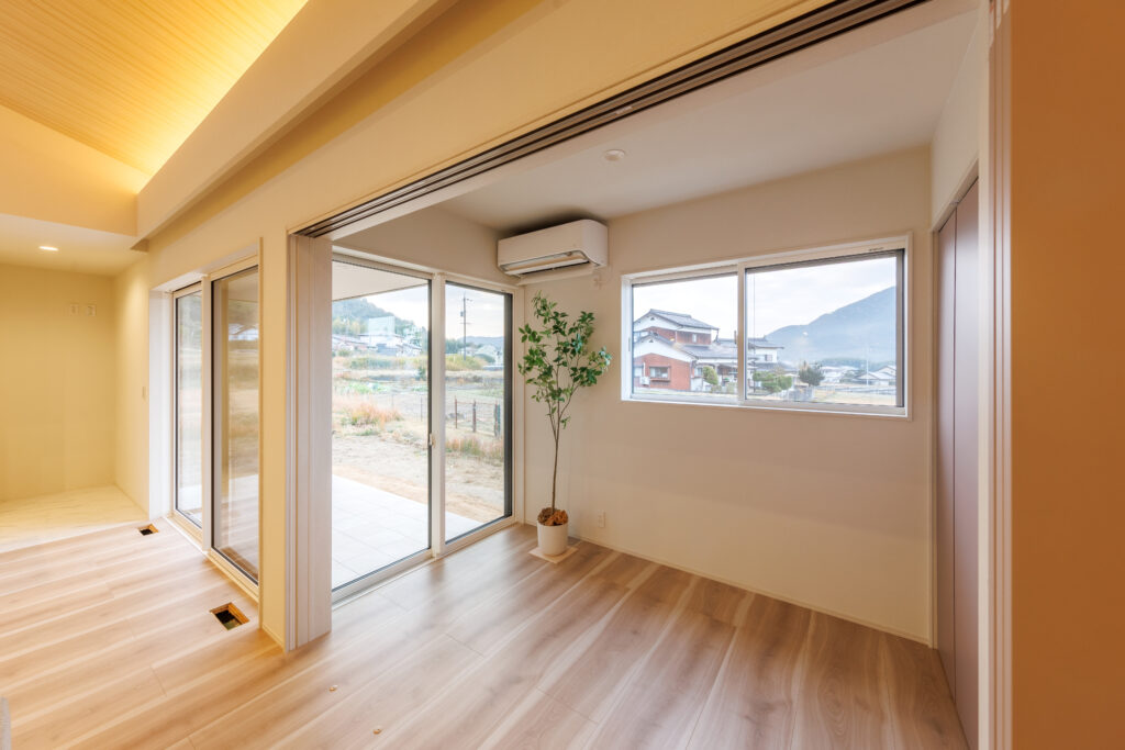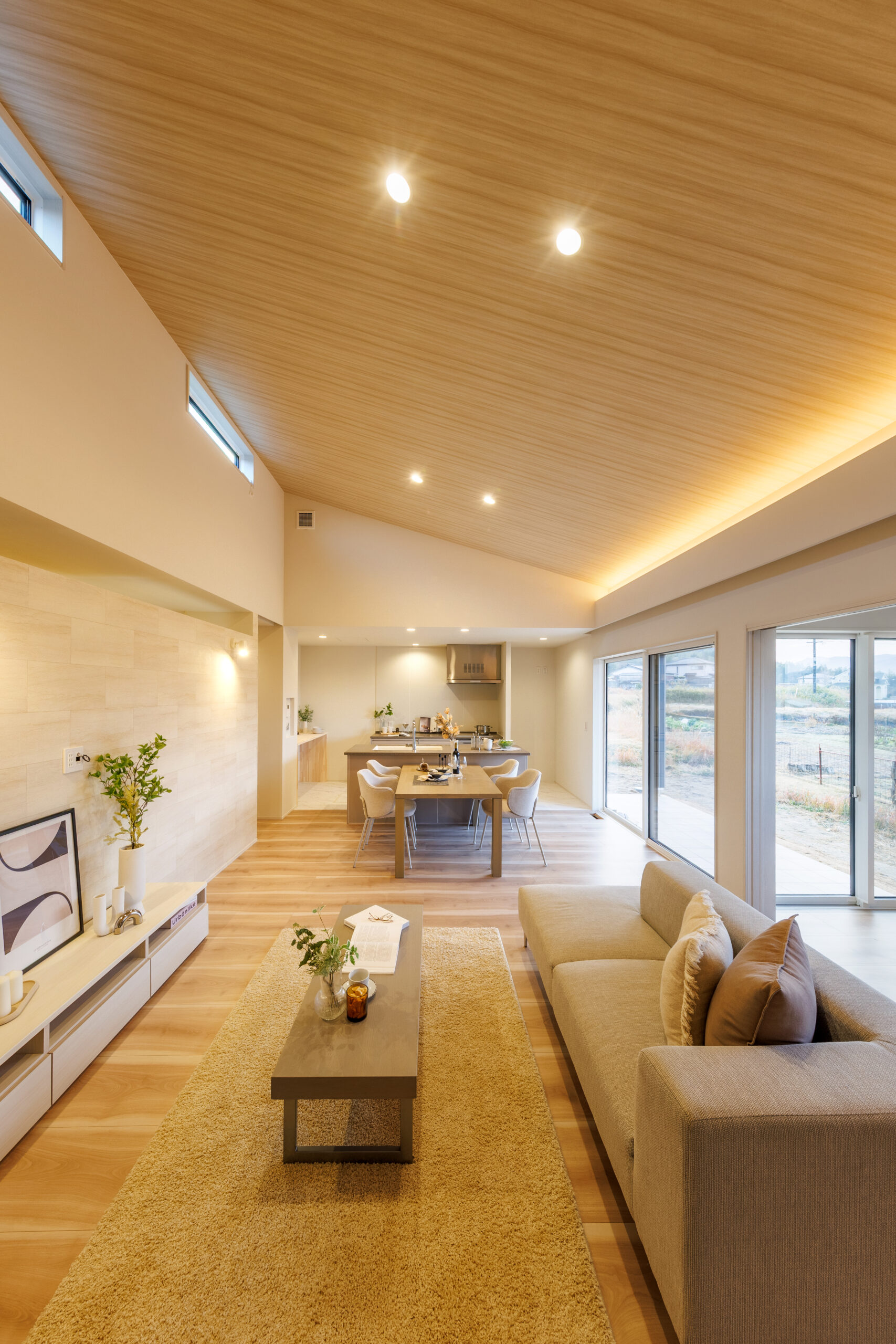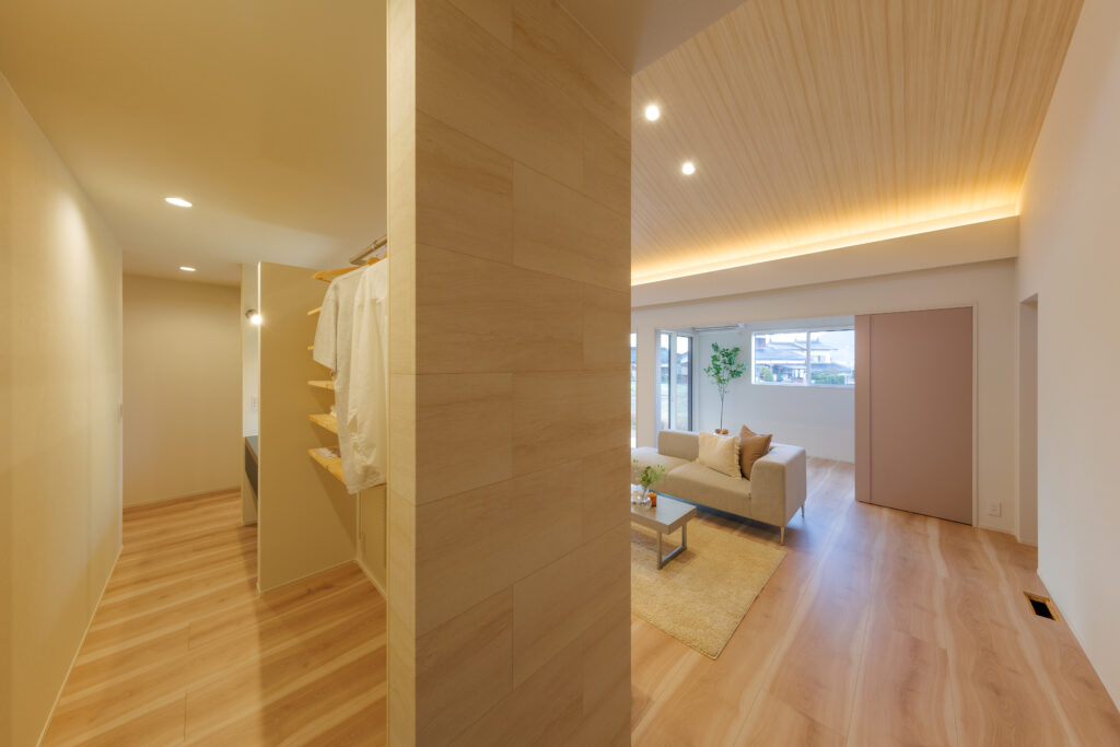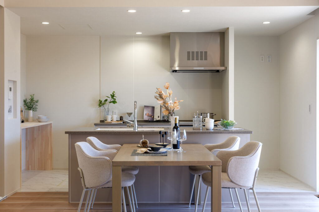開放的な勾配天井のLDK 平屋 House Information 温熱性能 熱損失係数 Q値 1.40W/(㎡・K) 外皮性能 外皮平均熱貫流率 UA値 0.36W(㎡・K) 外皮性能 平均日射熱取得率 ηAC値 1.2 気密性能 相当隙間面積 C値 0.23cm²/㎡ お客様の声 Related Achievements 関連実績 注文住宅 HTTな暮らし 注文住宅 我が道を行く 注文住宅 愛するペットと暮らす癒しの住処